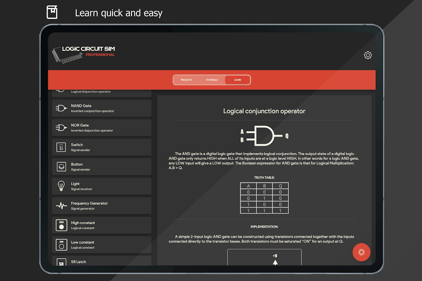Logic Circuit Simulator PRO – предоставляет вам место для разработки собственной цифровой схемы. Хотите понять, как работает электроника? Приложение поможет вам изучить основы электроники и электротехники. Создавайте удивительные логические схемы со всеми предоставленными логическими элементами. Используйте различные элементы, чтобы ★ развиваться ★ экспериментировать и ★ учиться.