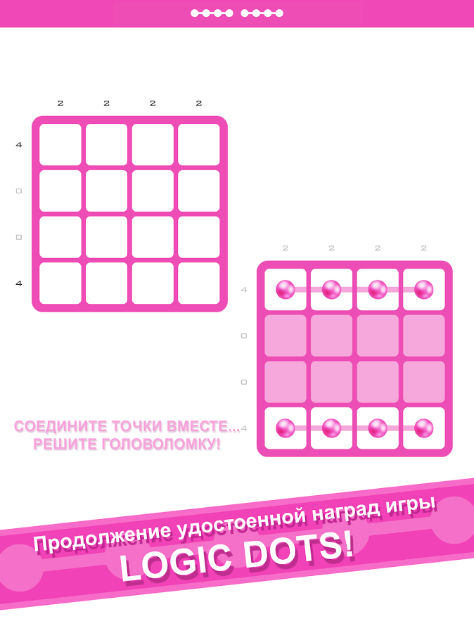 — ИСПОЛЬЗУЙТЕ ЛОГИКУ, ЧТОБЫ ПОБЕДИТЬ: Располагайте точки на поле, чтобы связать их и составить фигуры для решения каждой логической головоломки.