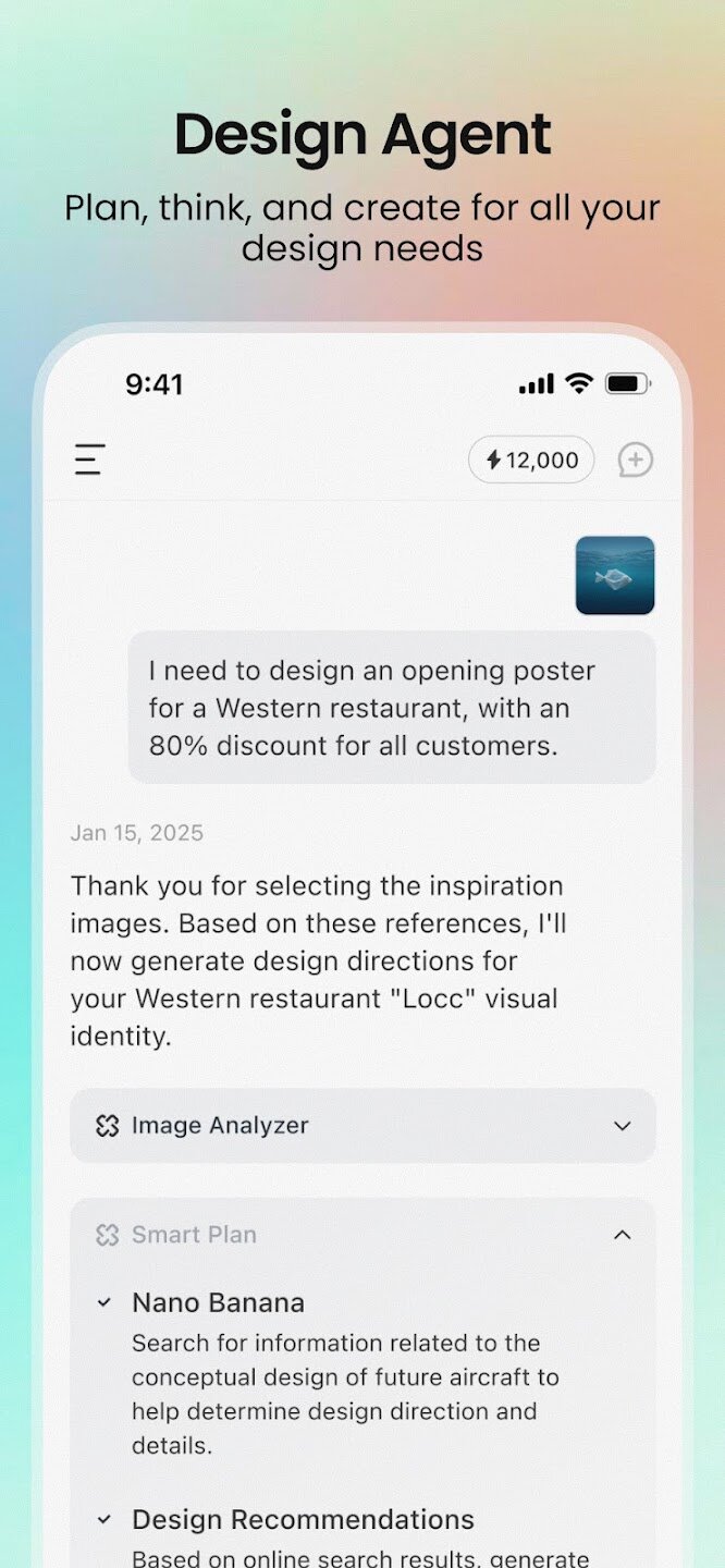 Опишите свои потребности, а Lovart сделает всё остальное! Этот дизайнерский агент на базе искусственного интеллекта автоматизирует весь творческий процесс, создавая для вас комплексные дизайн-проекты — будь то изображения, видео, аудио или 3D-модели.