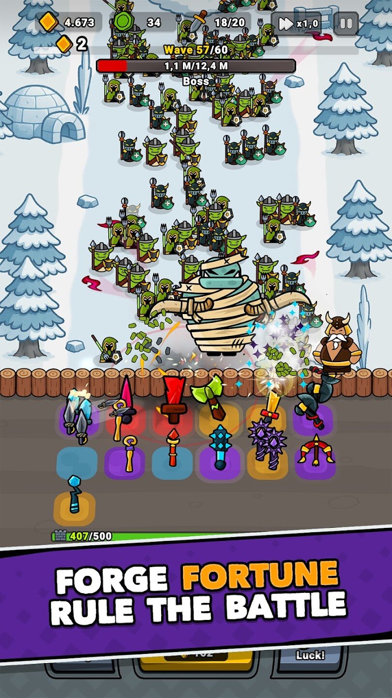 Lucky Forge: Idle TD Game – это уникальный гибрид RPG и Tower Defense с элементами idle-геймплея, где успех зависит не только от стратегии, но и от удачи, а ваше оружие создается буквально на волшебной наковальне случайностей.