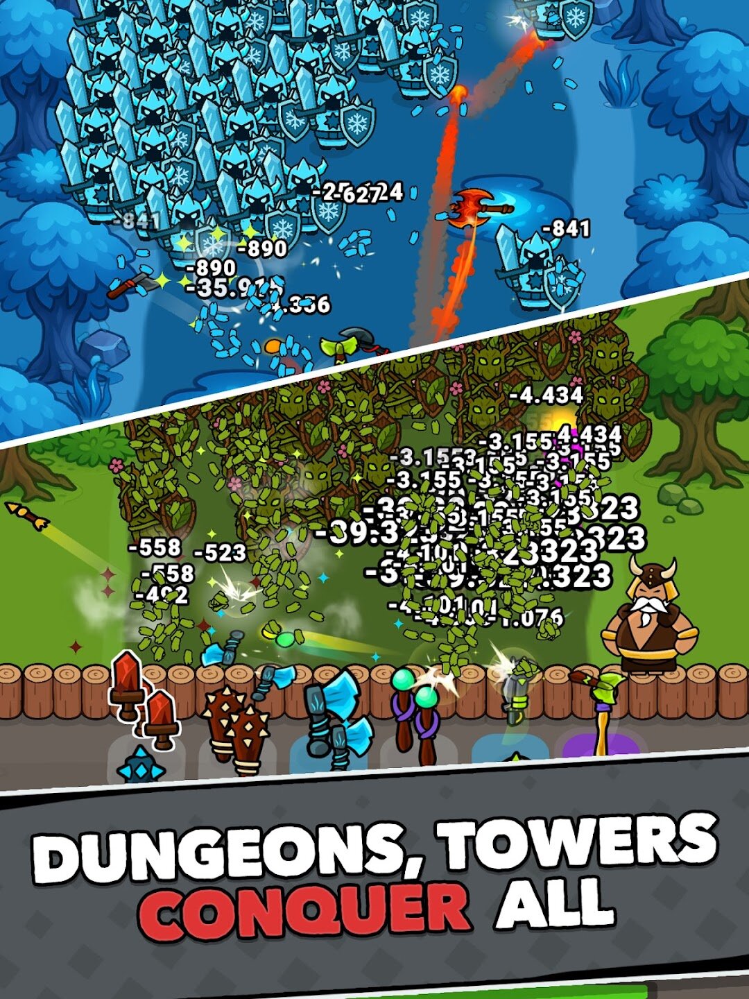 - Новаторский микс жанров: TD, RPG и idle-механики