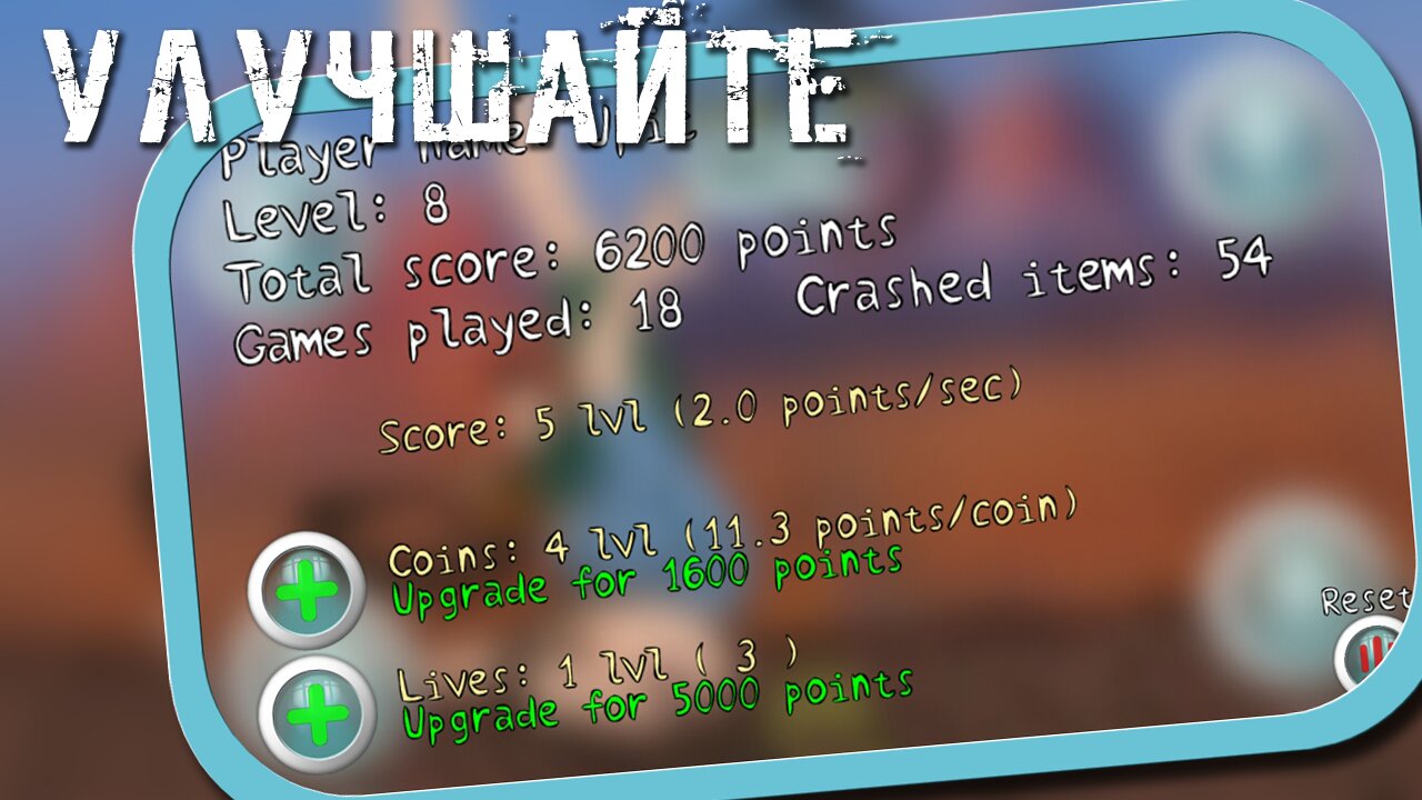 - Улучшайте свои навыки, увеличивайте жизни, поднимайте уровень.