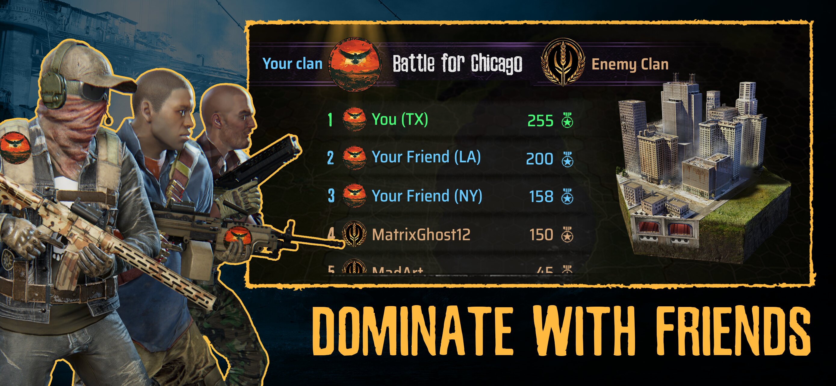 Выберите свою роль в бесконечном конфликте. Участвуйте в тактических уличных перестрелках с соперничающими кланами и врагами с искусственным интеллектом, чтобы захватить ключевые районы. Или же командуйте своим кланом с позиции стратегического обзора, планируя захват территорий, запуская операции отрядов по захвату важных ресурсов и управляя 24-часовыми циклами клановой войны, которые определяют контроль над картой. Ваш успех как в прямых боях, так и в общей стратегии способствует расширению вашего клана и открывает доступ к редкому снаряжению.