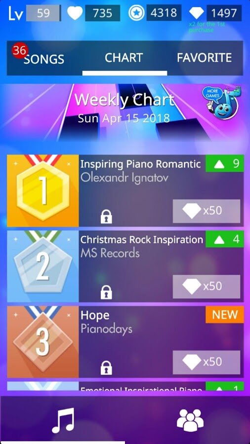 В ходе игры вам предлагается сыграть различные музыкальные произведения. Вам будет предложено исполнить классическую музыку и современные популярные мелодии. Выбор инструмента за вами. Это может быть фортепиано, гитара барабан. Ваша задача попадать в такт мелодии и зарабатывать баллы. На полученные балы вы можете покупать дополнительные опции и делать инвестиции в различные активы, такие например как алмазы.