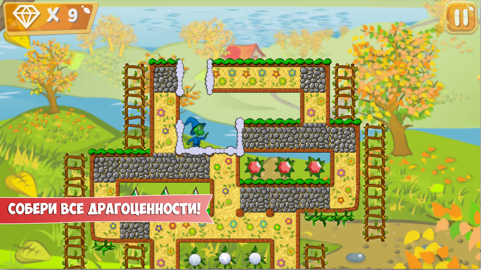 Эта игра придется по вкусу всем поклонникам классической игры Лод Раннер. Впереди вас ждет 90 увлекательных уровней, расположенных в 3 игровых мирах. Каждый лабиринт — это веселая логическая задачка, для решения которой нужно не только быстро думать, но и быстро бегать,