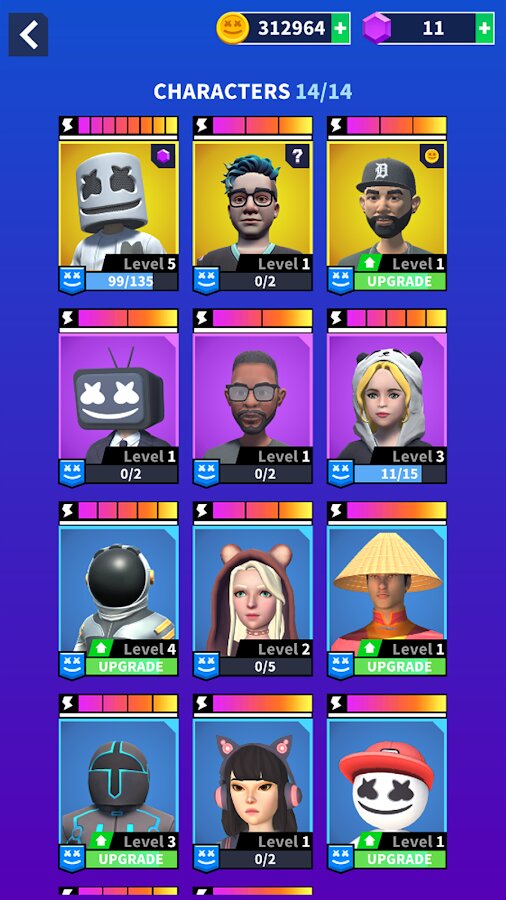 На протяжении всей игры вы будете собирать и получать новых персонажей – они помогут вам в прохождении уровней. Открывайте сундуки, чтобы получить новых персонажей. Достигайте каждый раз новых вершин – поставьте ваш личный рекорд на каждом из уровней. Интуитивно понятное управление. Пройдите все уровни с лучшим результатом и станьте лучшим из лучших, но для этого вам придется потренировать вашу ловкость.