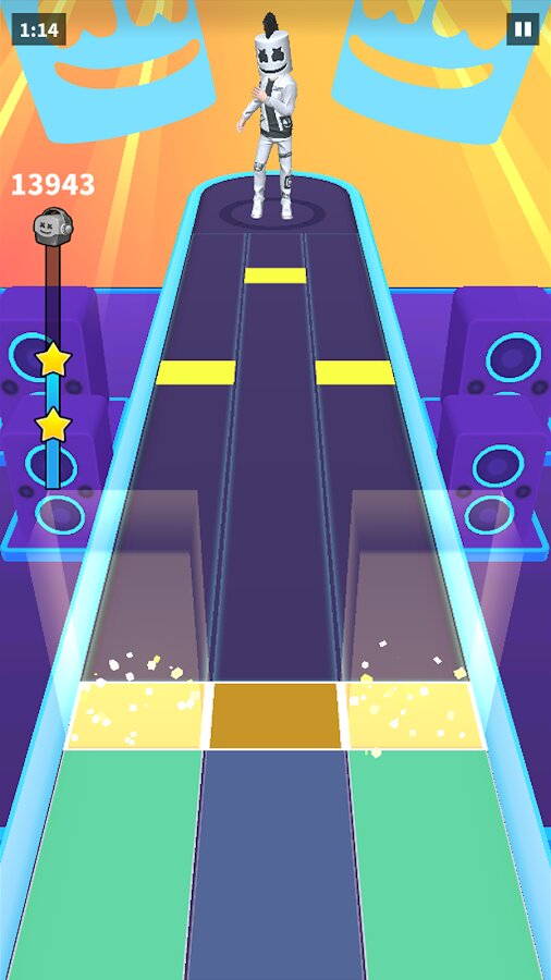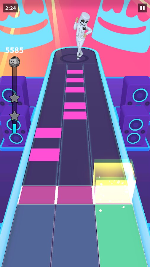 В Marshmello вам предстоит нажимать на плитки в ритм музыки разных жанров. В игре есть несколько уровней сложностей. Каждый уровень по-своему уникален. Множество песен, которые будут вас сопровождать на протяжении всей игры.