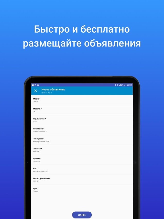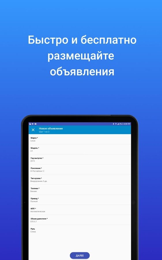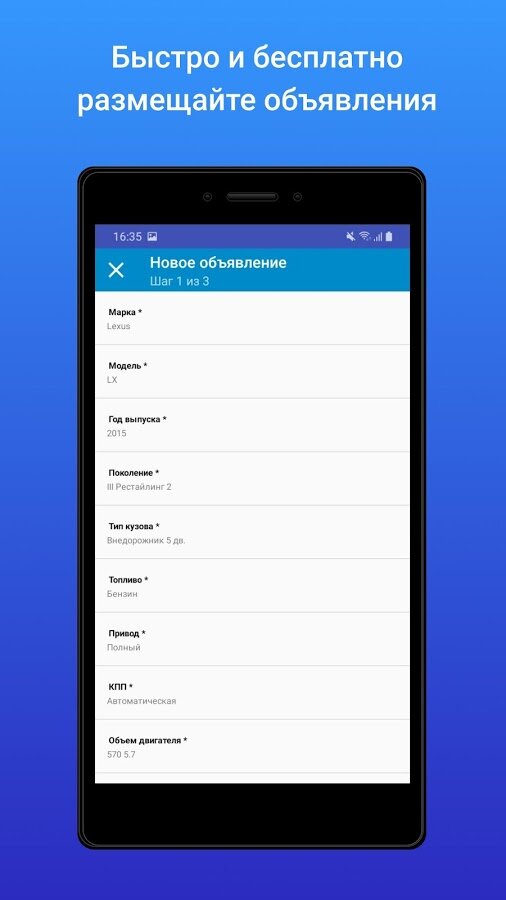 - удобный интерфейс добавления новых объявлений с помощью вашего смартфона;