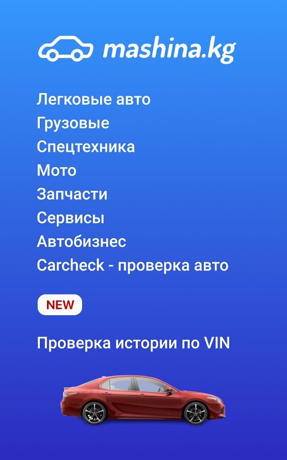Инновационный автомобильный ресурс Кыргызстана Mashina.kg предлагает мобильное приложение для всех, кого интересует купля, продажа и обмен авто. Теперь весь авторынок Кыргызстана всегда у Вас под рукой! Mashina.kg станет для Вас незаменимым помощником в вопросах купли, продажи и обмена авто!