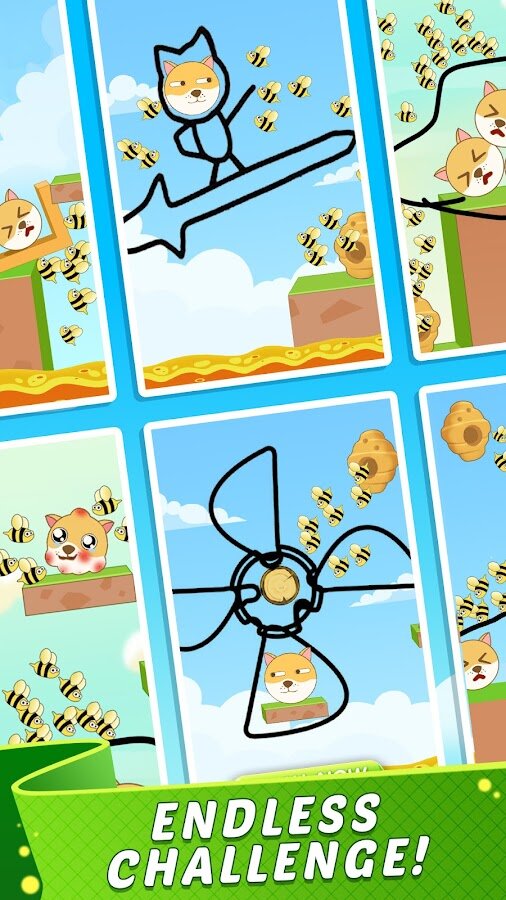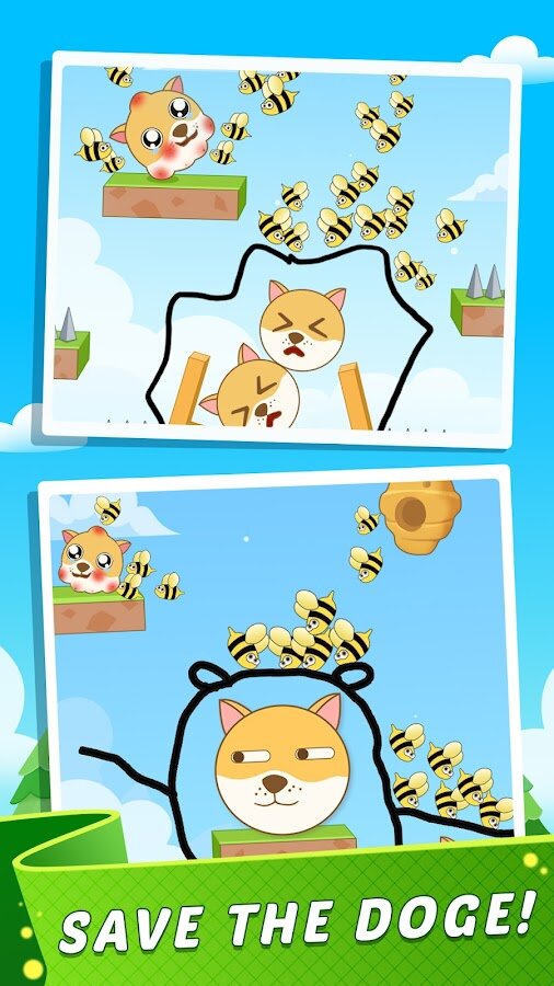 - Спасите дожа! Рисуй, чтобы выиграть! Используйте свой мозг и палец, рисуйте линии, чтобы защитить милого дожа от нападения пчел! Сможете ли вы успешно пройти уровень с замечательной фигуркой? Все зависит от вашей фантазии!