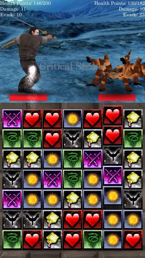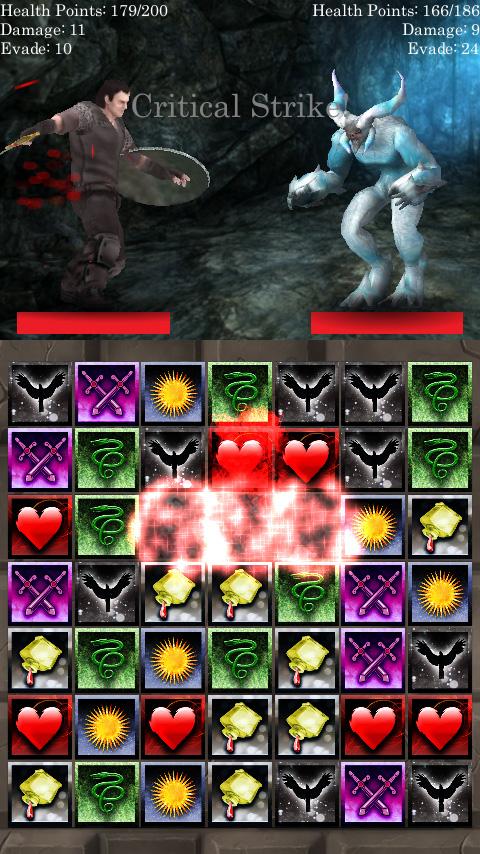 Для того, чтоб атаковать противника, вам надо собрать в ряд три или более одинаковых элементов. Собранные элементы помимо атаки предоставляют различные бонусы вашему герою. Побеждая соперников, вы накапливаете опыт и повышаете уровень своего героя. Но будьте готовы и к поражению, игра не щадит невнимательных игроков. Игра Match 3 RPG: Evil Hunter определенно заслуживает внимания любителей игр жанра три в ряд.