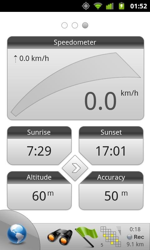 - Запись треков одним кликом. Треки, записываются в формате GPX и могут быть просмотрены в Google Планета Земля или другом программном обеспечении.