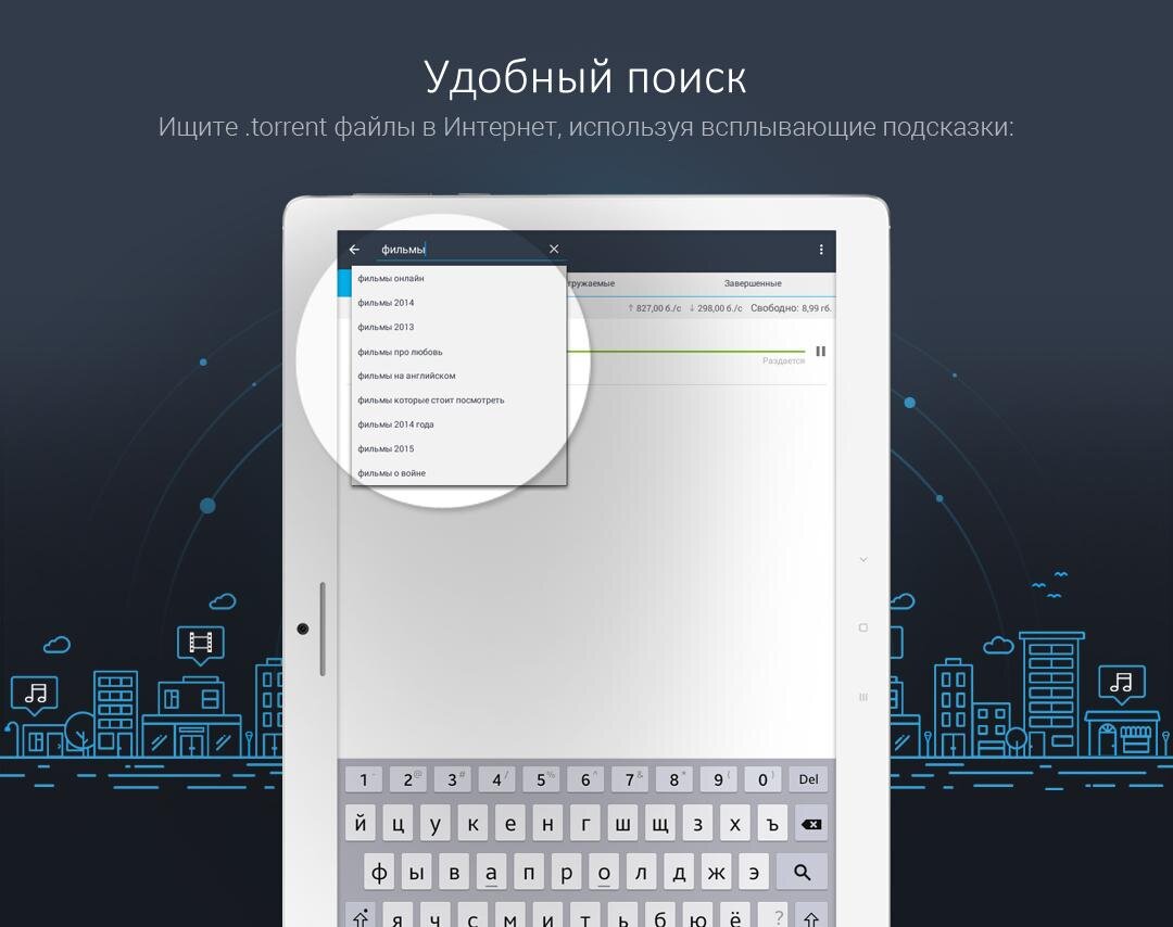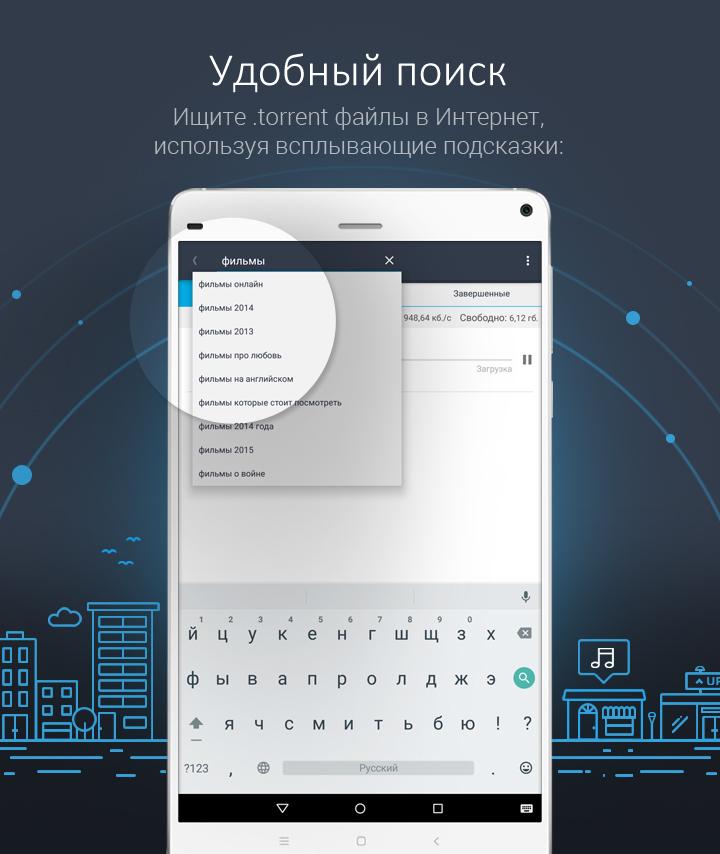 Процесс скачивания не займет у вас много времени, так как вне зависимости от размера файла, он скачается очень быстро благодаря высокой скорости работы торрент-сетей. Помимо всего прочего, вы также сможете скачивать все выбранные вами файлы на очень высокой скорости. Наслаждайтесь своими любимыми фильмами и музыкой у вас на устройстве в любое время и в любом месте.