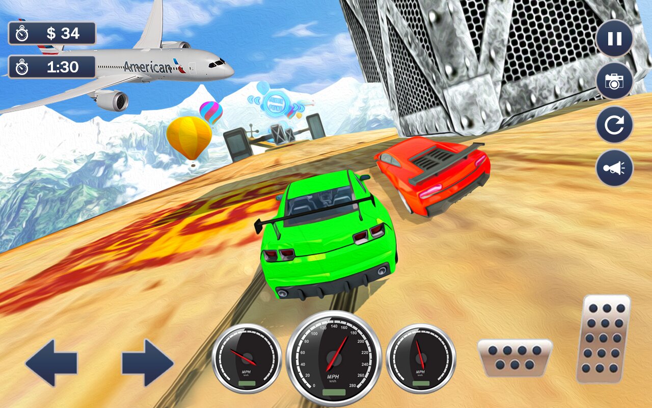 Игра Mega Ramp – это один из самых реалистичных симуляторов. Отличная графика в 3D, невероятно крутые автомобили, уникальные гоночные трассы в небе и экстремальные гоночные трюки – всё это вы найдёте в Mega Ramp. Бросьте вызов друзьям и покажите, на что вы способны.