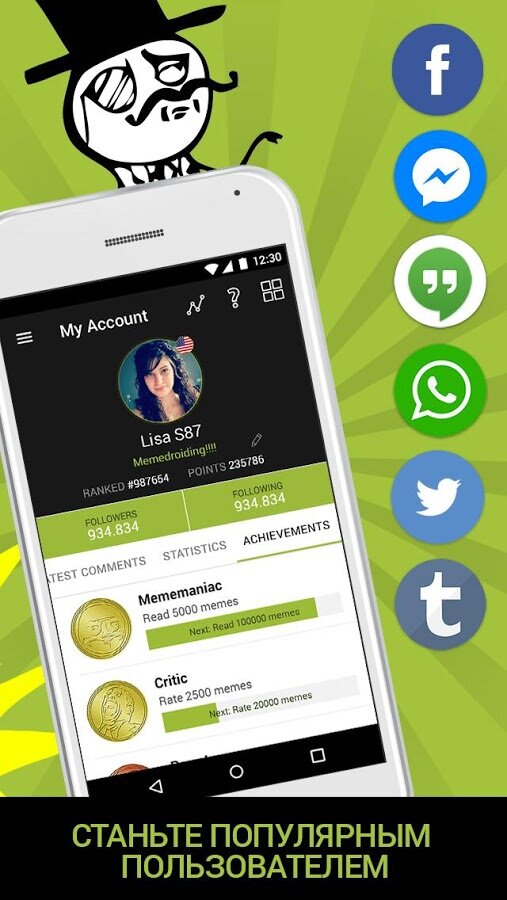 - Проверьте рейтинг пользователей Memedroid, посмотрите, кто из них имеет самые высокие баллы и попробуйте превзойти их.