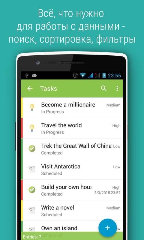 - 11 готовых шаблонов (задачи, различные коллекции, покупки, инвентаризация и т.д.);