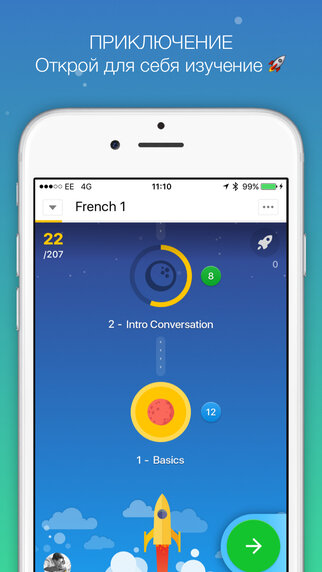 - Игры, цели и награды, превращающие изучение языка в лёгкое и увлекательное путешествие
