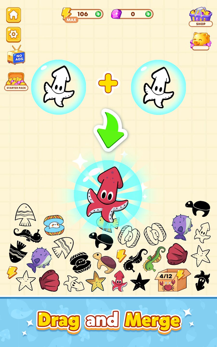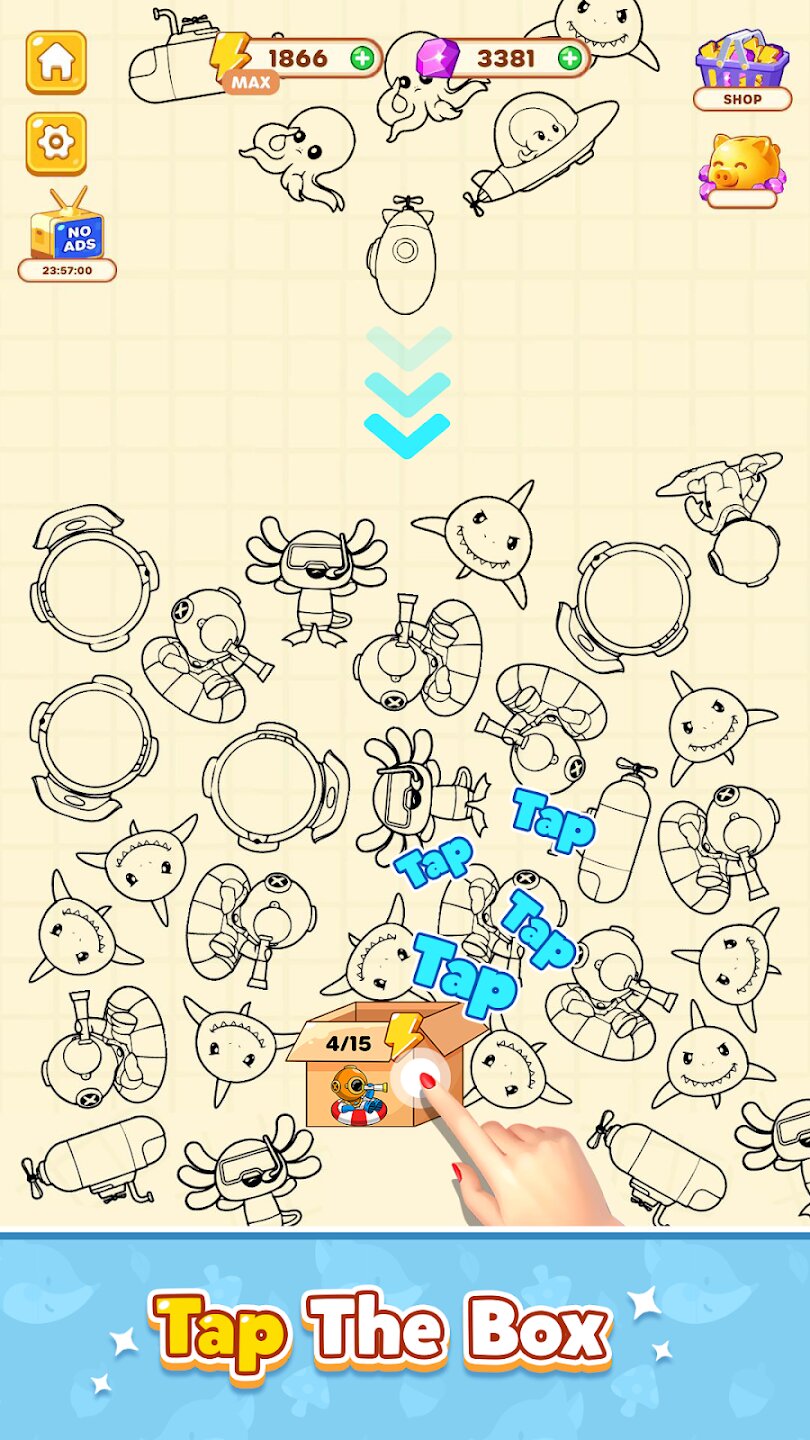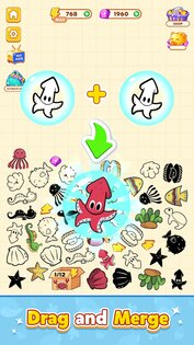 - Успокаивающий геймплей с механикой слияния предметов