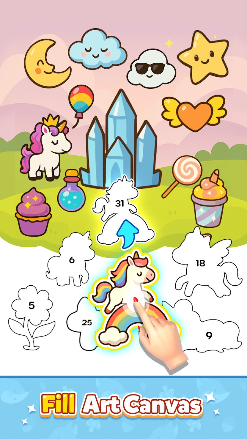 Создавайте собственные галереи из полученных наклеек, экспериментируя с их расположением на цифровом холсте. Merge Art Canvas идеально подходит для коротких сессий или продолжительных игровых сеансов, даря чувство удовлетворения от каждого созданного шедевра.