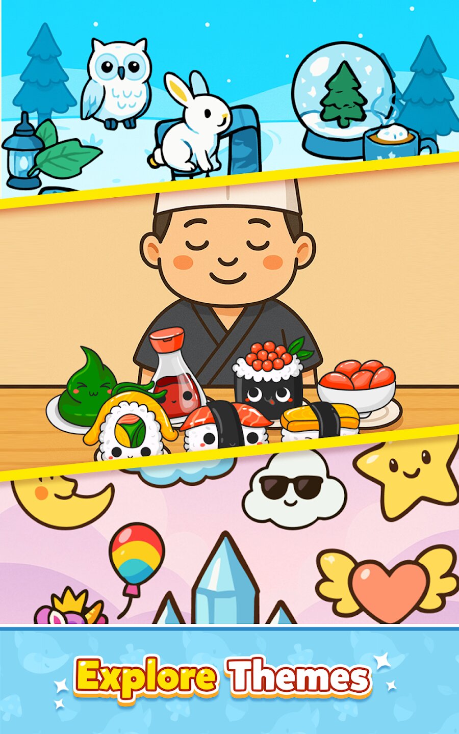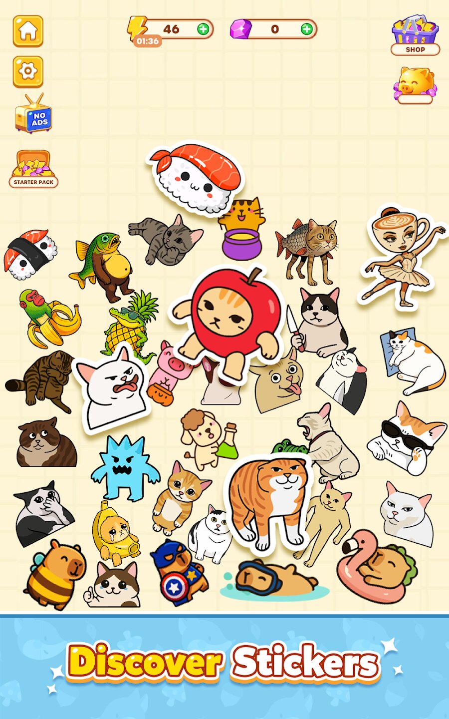 Погрузитесь в медитативный процесс соединения элементов, где каждое удачное объединение открывает новые стикеры и художественные сцены. Игра предлагает десятки тематических коллекций — от фэнтезийных пейзажей до абстрактных композиций, которые постепенно оживают по мере вашего прогресса.