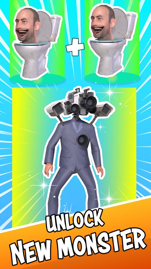 - Объединяйте и комбинируйте похожие туалеты Skibidy, чтобы разблокировать более сильных монстров.