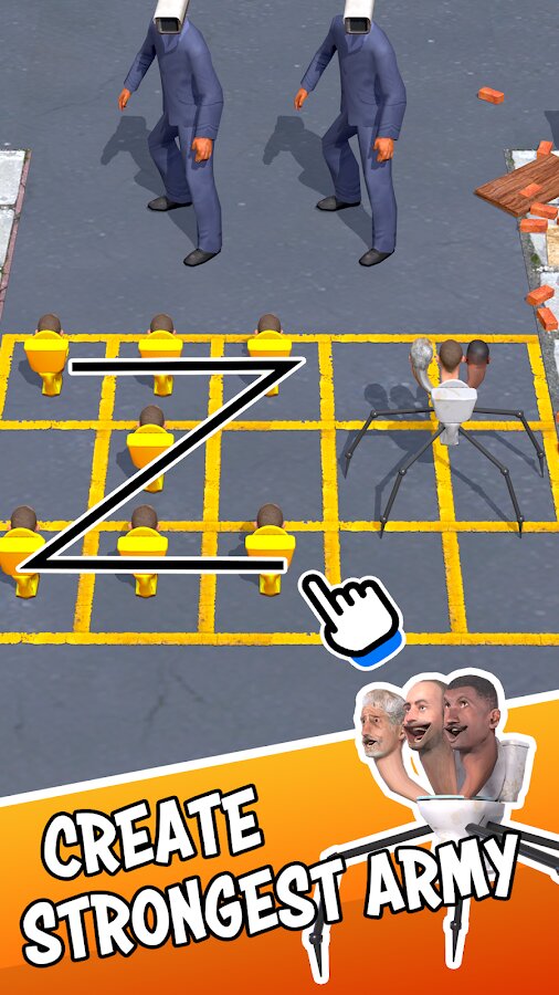 - Улучшайте свою армию Skibidy, чтобы увеличить их силу и способности.
