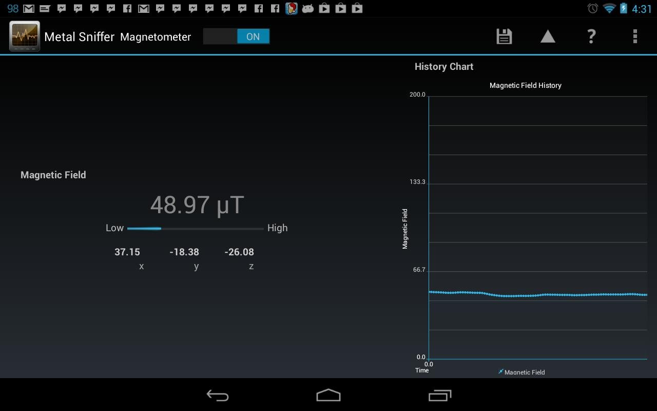 Metal Sniffer — металлоискатель на телефоне. Работает с помощью магнитометра (компаса) на вашем устройстве.