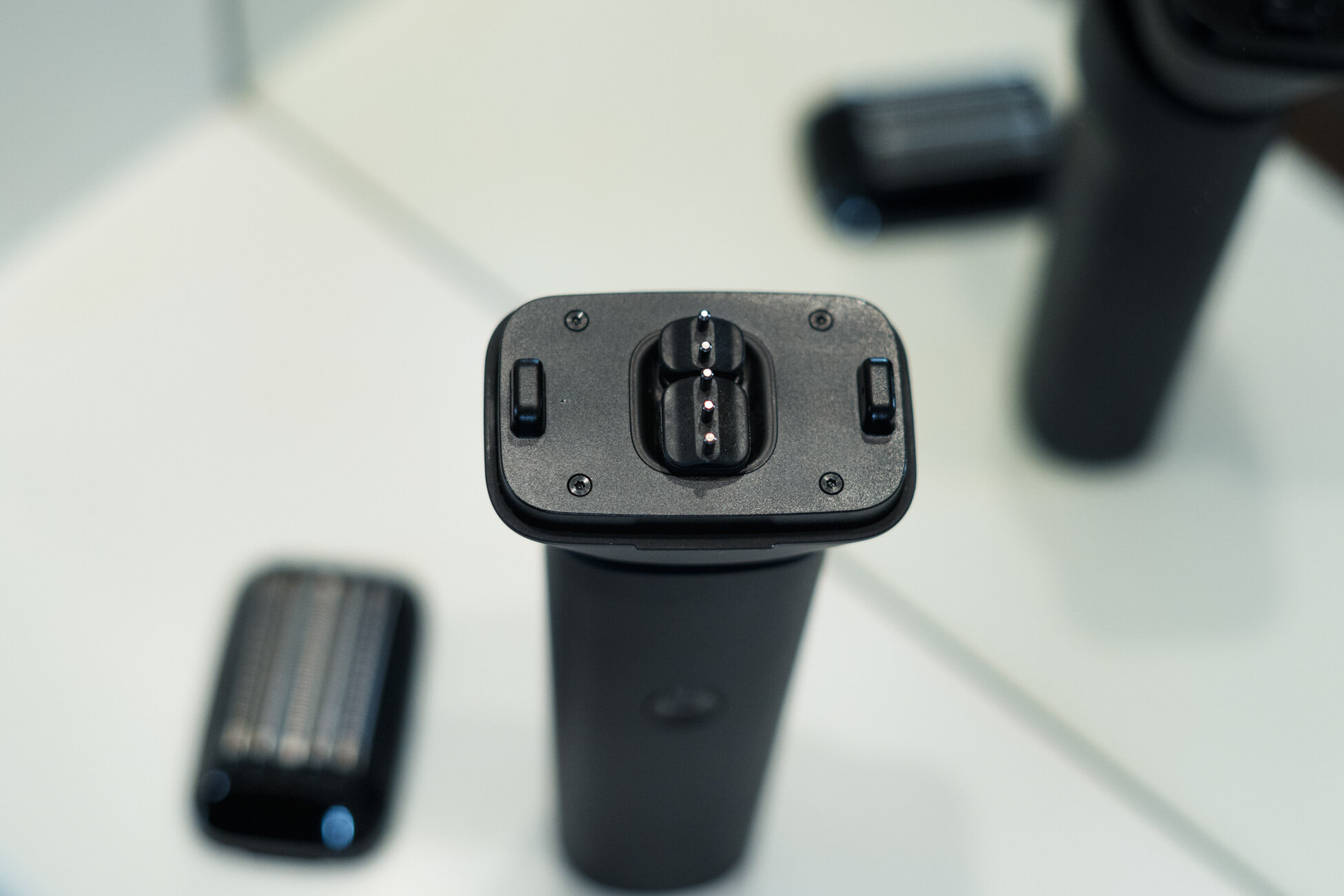 На корпусе имеется всего одна кнопка, отвечающая за активацию и деактивацию бритвы. Чуть ниже клавиши включения расположен один световой индикатор, отвечающий за отображение заряда (красный, желтый и белый). В основании ножки на плоской поверхности имеется разъем Type-C для зарядки.