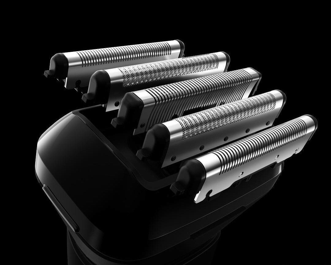 Всего в Mi 5-Blade Electric Shaver установлено 5 лезвий. Те, что расположены максимально удаленно друг от друга — глубокие лезвия с бионической сеткой. Они имеют толщину 55 мкм и призваны точно повторять контуры лица. Два поближе — изогнутые U-образные лезвия, которые первые вступают в контакт с кожей и улавливают волоски разной длины. Единственное центральное лезвие оснащено высокоточным поднимающим механизмом, помогающим добраться до вьющейся или растущей близко к поверхности кожи растительности.