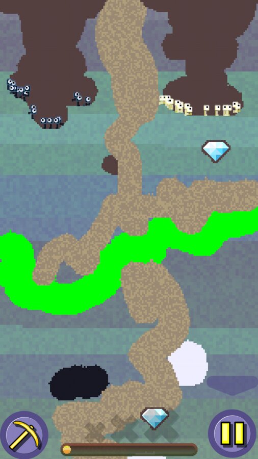 Micro Miners на андроид — это интересная аркада с элементами головоломки, выполненной в популярном сейчас пиксельном стиле. В игре вам придется рыть подземные ходы для того, чтобы шахтеры смогли добраться до полезных ископаемых.