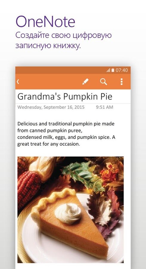 OneNote — это цифровая записная книжка для списков дел, конспектов, планов на отпуск и любой информации, которую вам нужно упорядочить или запомнить. Заметки, аудиозаписи и фотографии — все это можно сохранить в OneNote. Заметки синхронизируются между всеми вашими устройствами и доступны, где бы вы ни находились. Вы легко можете обмениваться своими заметками с другими. Скачивайте бесплатные приложения OneNote для ПК, Mac, Windows Phone, iPhone, iPad, Apple Watch, Android и Android Wear. Вы также можете перейти на сайт onenote.com, чтобы просмотреть свои заметки.