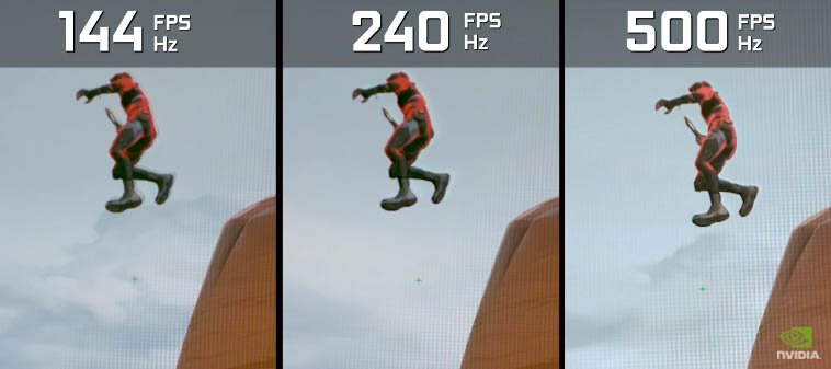 Кроме того, способность различать разницу в частоте кадров зависит от множества факторов — включая чувствительность человека, условия просмотра и тип просматриваемого контента. Например, разница между 30 и 60 кадрами в секунду довольно заметна с точки зрения плавности и чёткости изображения, особенно в насыщенных экшеном видеоиграх или в процессе просмотра «высокоскоростных» видеоматериалов. Но при переходе к более высокой частоте кадров, например, от 220 до 250 FPS, улучшение качества изображения становится гораздо менее заметным.