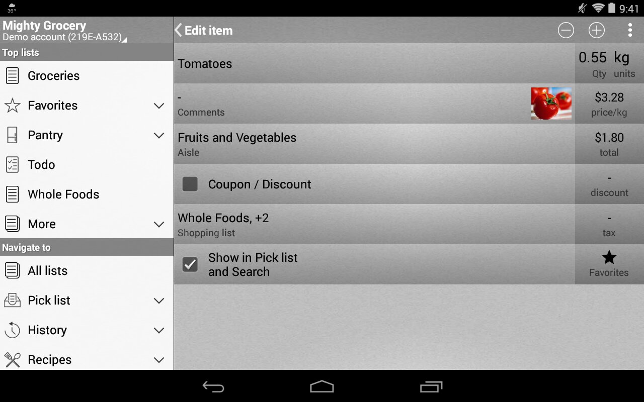 Mighty Grocery — мощнейший и в то же время простой для использования инструмент для работы со списками покупок на Android.