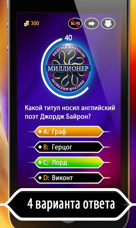 Играйте в самую модную интеллектуальную теле-игру «Кто хочет стать миллионером» прямо на своём девайсе!