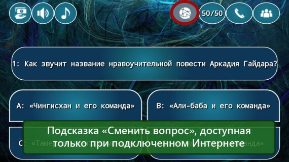 Работа с вопросами в игре проработана таким образом, что игроку они будут всегда выдаваться в случайном порядке, варианты ответов также перемешиваются между собой, так что воспользоваться визуальной памятью особо не удастся. Да и сами вопросы не начнут повторяться до того момента, пока пользователь не ответит на все. А их огромное множество и хватит не на одну неделю.