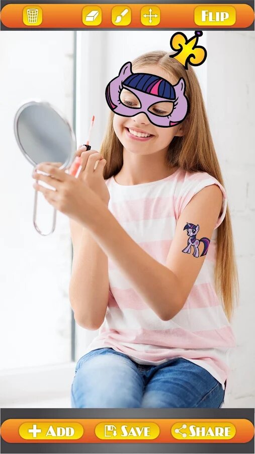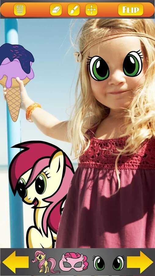 Не просто потрясающий, а великолепный редактор изображений, в котором вы помимо фильтров можете прикрепить к снимкам такие крутейшие стикеры как рог Пинки Пай, наклейки Celestia, Rainbow, Spike, Scootaloo и Applejack. Результат вас ПОРАЗИТ.