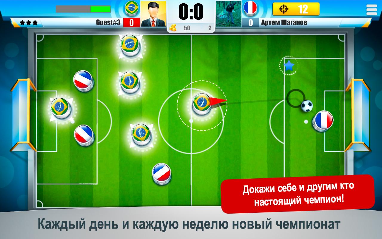 Простая и эмоциональная игра. Мини Футбол — доступная всем игрокам и очень веселая игра! Играйте с Вашими друзьями. Играйте против случайных игроков со всего мира и зарабатывайте очки. Конечно, Вам доступна игра против AI или игра с другом на одном телефоне, тренировка и мини-игра на точность ударов. Выбирайте вашу футбольную команду, защищайте национальные цвета флага или выбирайте специальную премиальную окраску. Соберите все команды, все тактические позиции и улучшайте Ваши способности. Удачи!