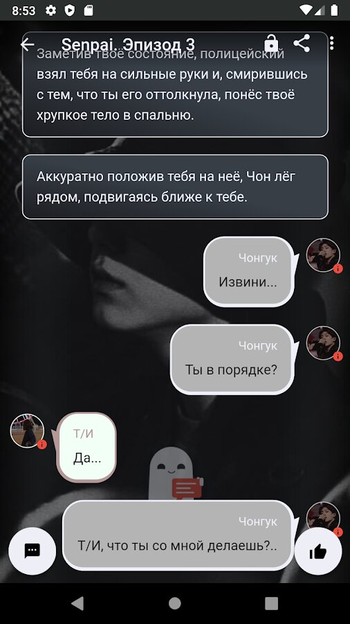 Здесь вас ждут пылкие новеллы и романтические истории про любовь 18 на русском интерактивные леденящие душу страшилки и ужастики, увлекательная фантастика и фанфики (bts, бтс, k-pop, яой) – всё это в легком игровом формате чат-истории. Принимайте решения и делайте выборы по ходу игры, принимайте звонки или сами станьте главным героем переписки.