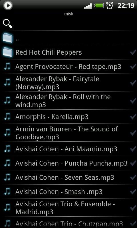 - Добавление композиций в плейлист мгновенно долгим нажатием на файл или папку