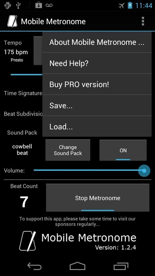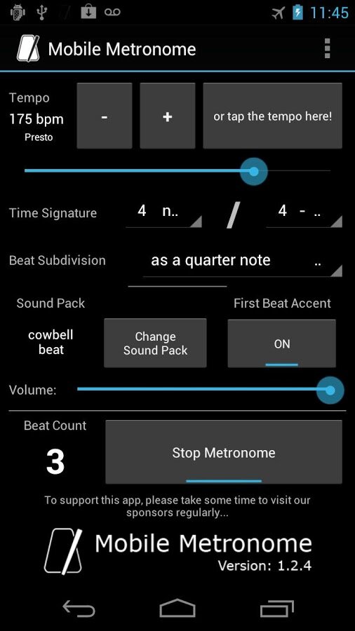 Mobile Metronome — музыкальный метроном для Android-смартфона. Простая в использовании и настройках программа, которая пригодится музыкантам.