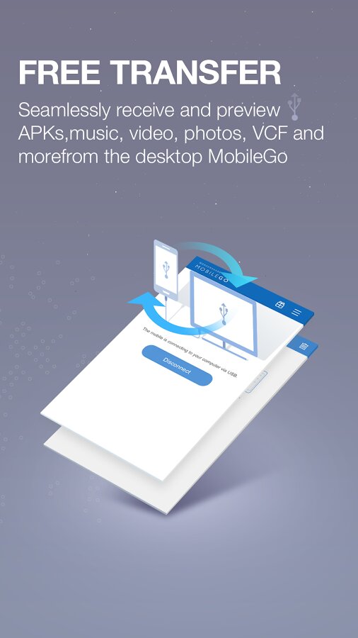 MobileGo — незаменимый инструмент, позволяющий пользователю эффективно управлять Android-смартфонами при помощи персонального компьютера. Приложение предоставляет возможность синхронизации через беспроводное соединение или по USB-кабелю содержимого телефона, управления контактами, мультимедийными файлами, SMS-сообщениями и приложениями, позволяет осуществлять конвертацию видеофайлов, с целью их просмотра на мобильном устройстве, а также упрощает процесс резервного копирования и восстановления данных.