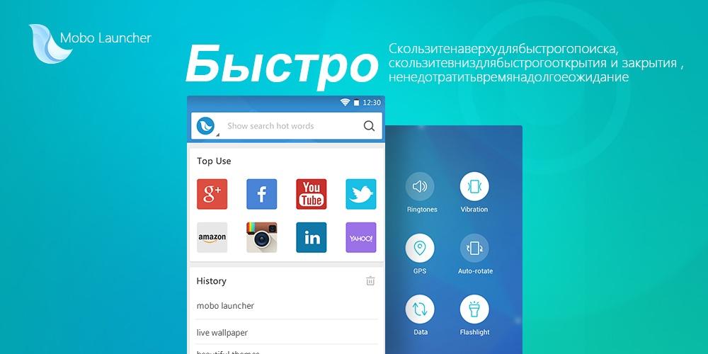 Mobo Launcher — по сравнению с другими оболочками сокращает объем трафика на 80%, использование памяти на 26%, а также снижает расход батареи на 20%. Используется подход Google к дизайну. Это такая же быстрая и гибкая оболочка, как Android 5.0, при этом обладающая более богатым выбором возможностей настройки.
