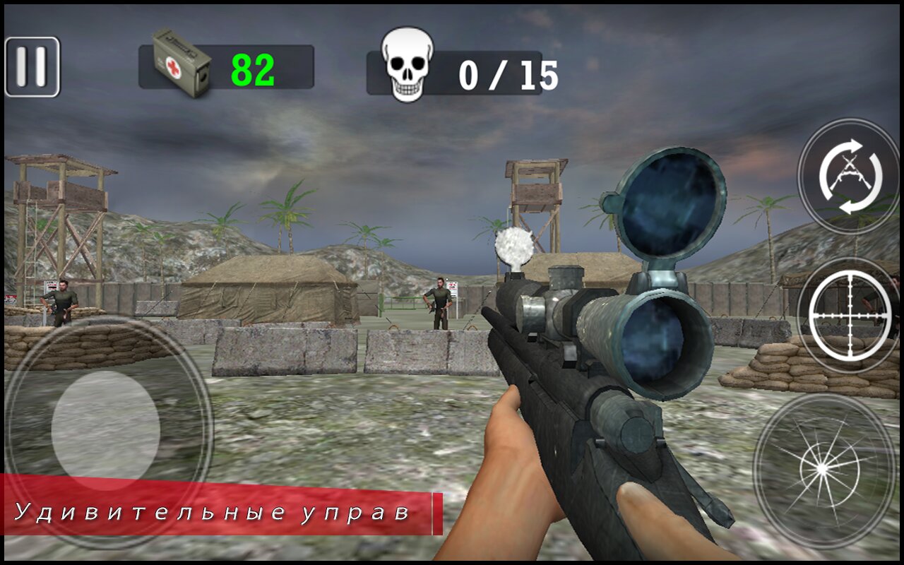 Modern Army Sniper Shooter — помогите снайперу, бойцу элитного отряда коммандос, выжить в окружении множества врагов. Стреляйте по врагу из снайперской винтовки. Проведите героя через сложные миссии в разных уголках мира в этой игре для Андроид. Сражайтесь в джунглях, пустыне, на вражеских базах и т.д. Занимайте удобные огневые позиции и уничтожайте противника меткой стрельбой. Старайтесь целиться в головы врагов, чтобы гарантированно поражать цели с 1 выстрела. Старайтесь уничтожать всех вражеских солдат до того, как они успеют начать ответный огонь.