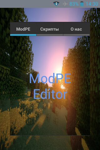 ModPE Editor — вы можете создать ModPE скрипт. Вы можете создать новый скрипт (нажатие на "(+) Новый"), редактировать моды (нажатие по моду) и стереть данные (долгий тап по моду) и удалить (5 долгих тапов по моду)