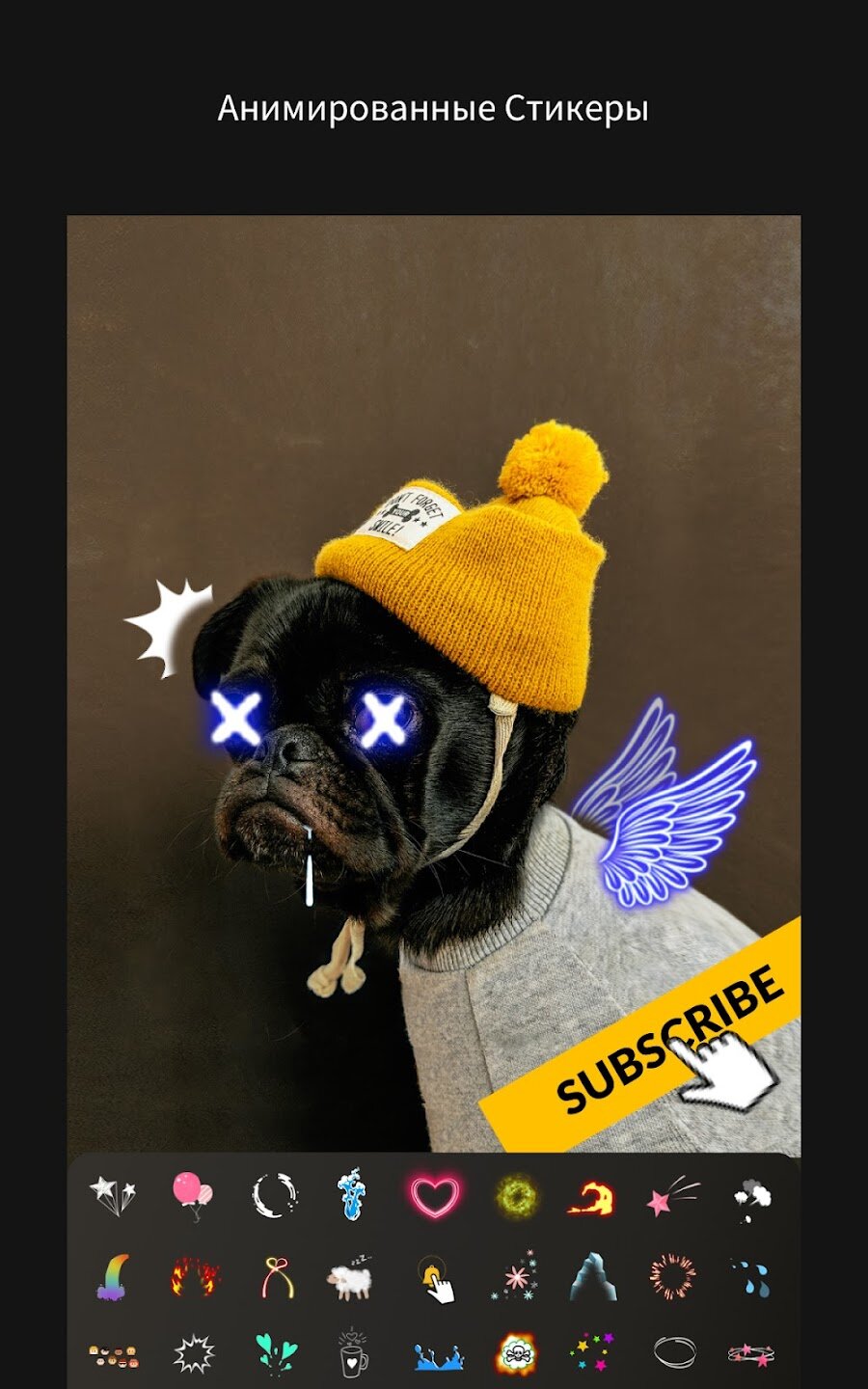 - Обширная библиотека из более чем 500 анимированных стикеров и сотен стилей анимированного текста.