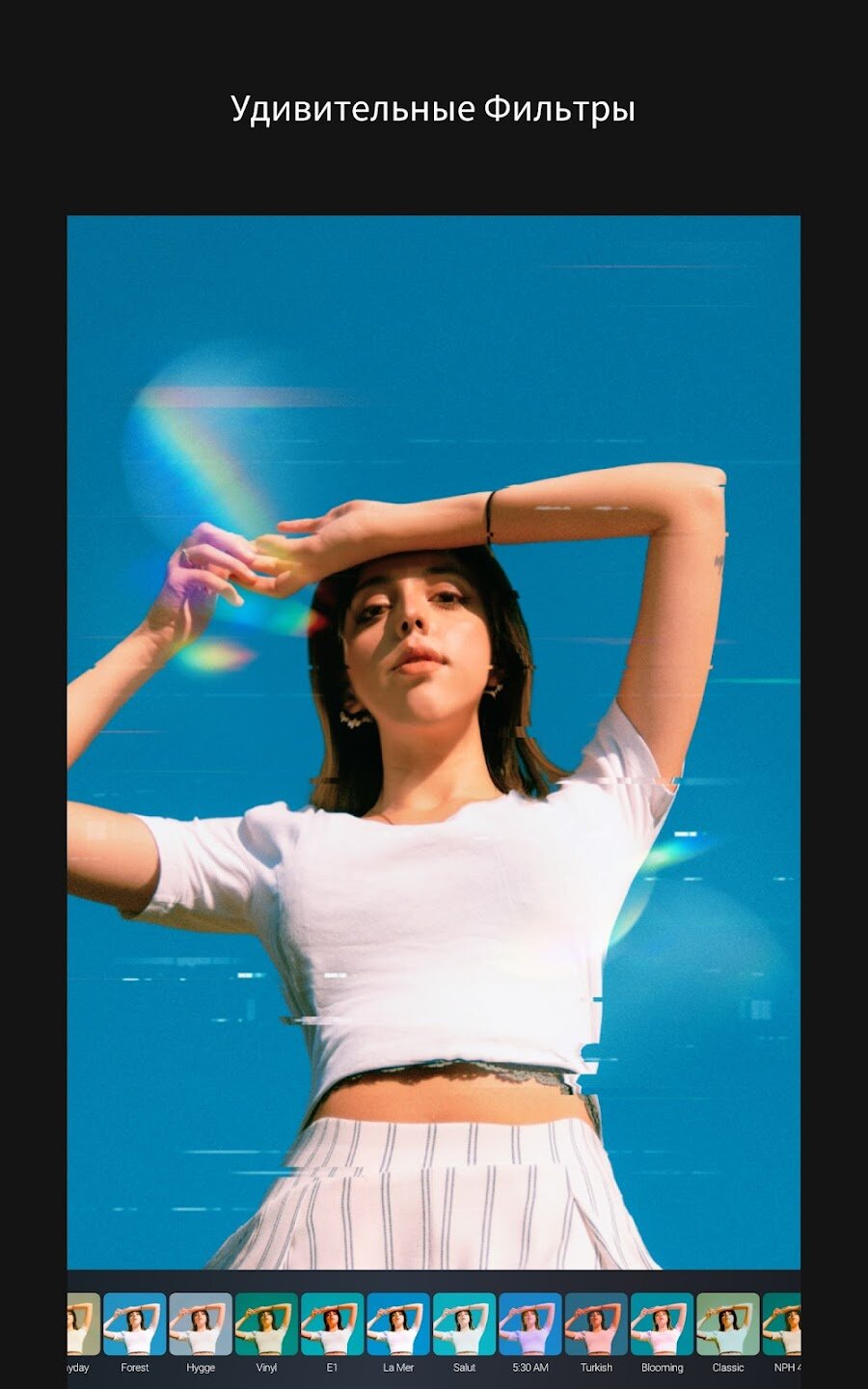 - Более 230 профессиональных видеофильтров и 14 тематических наборов фильтров.