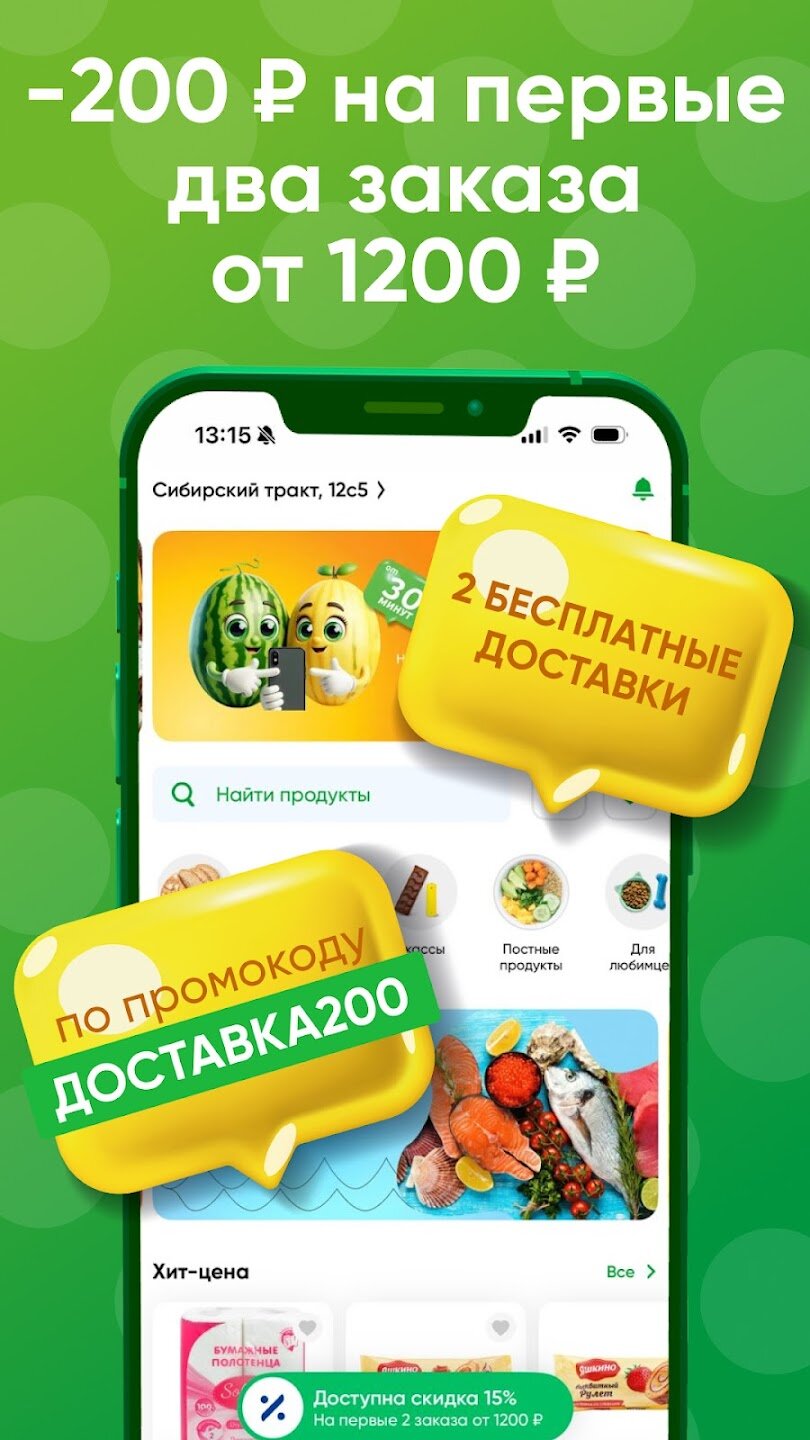 🎁 Дополнительные промокоды – получите скидку 15% на первые два заказа от 1200 рублей! Экономьте еще больше на любимых продуктах.
