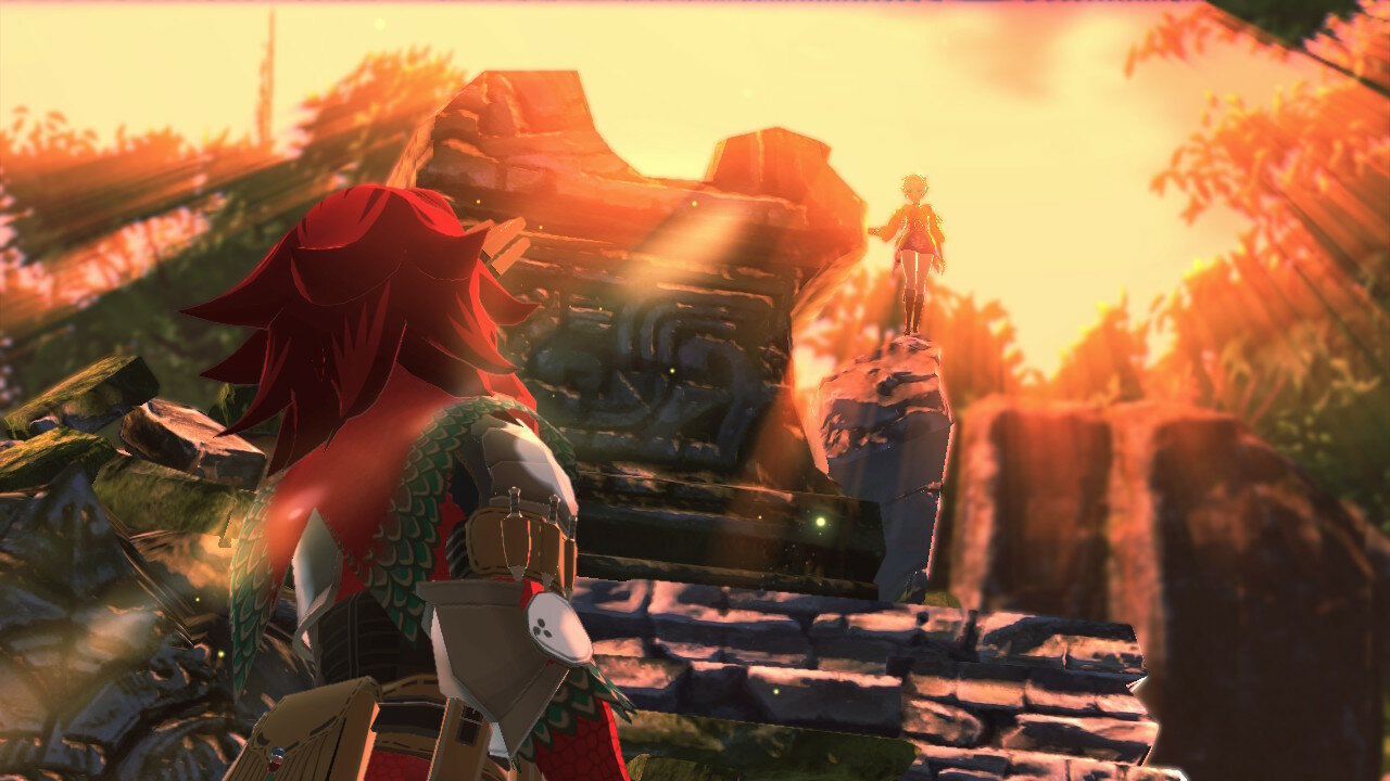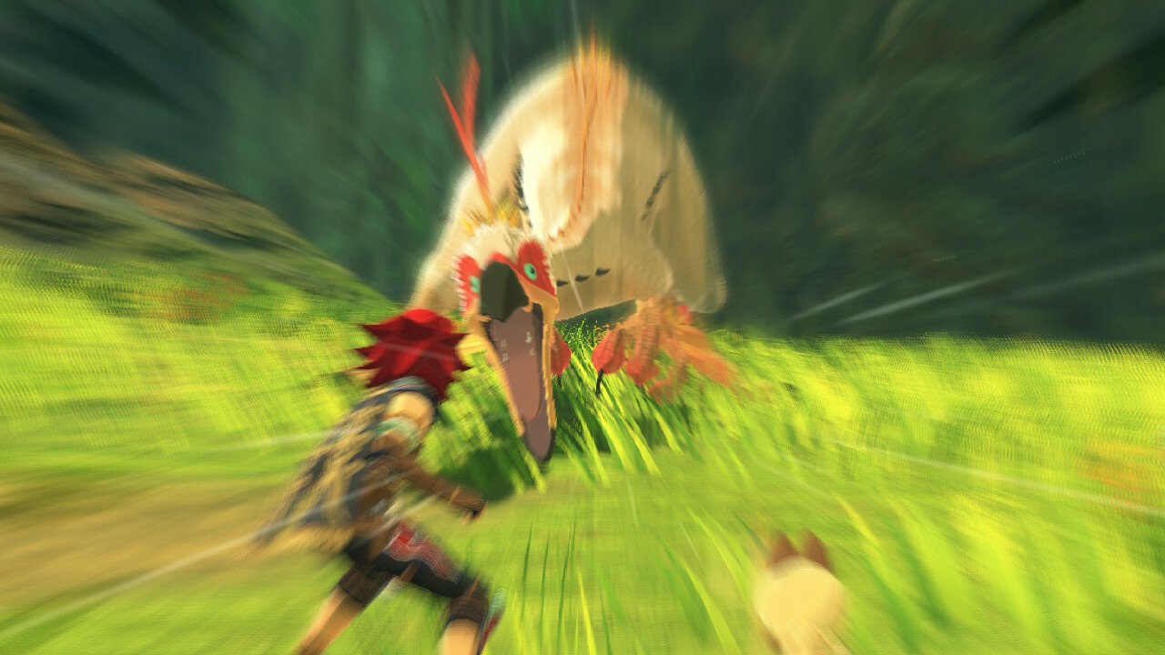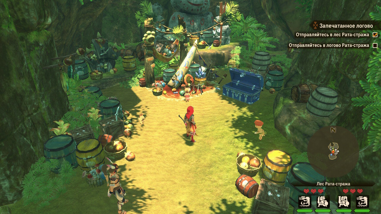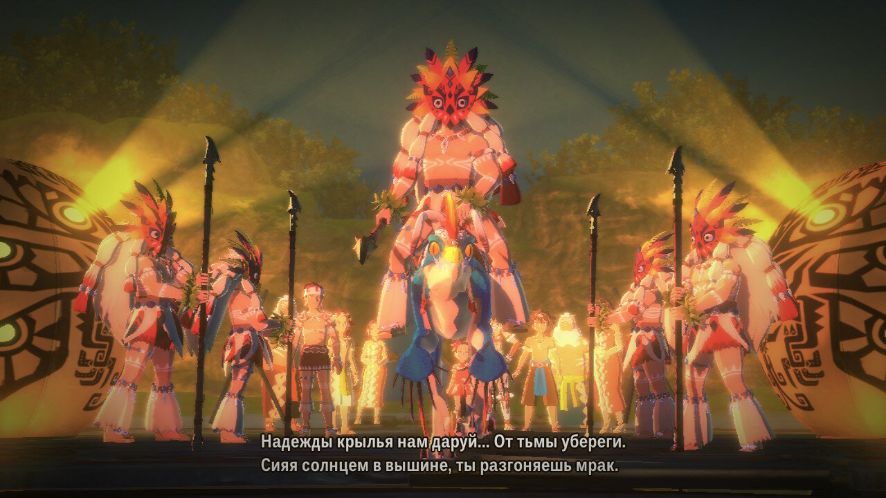 Далее начинается сюжетная кат-сцена, в которой выяснятся, что наш герой принадлежит к племени защитников монстров. Да еще и не простой простолюдин, а внук великого вождя и мастера-наездника, известного по первой части Monster Hunter Stories, именуемого Рыжим. Об этом довольно часто будут напоминать нам в диалогах. Полагаю, разработчики решили сделать это основным мотиватором стать сильнее для игрока, дабы перерасти тень, отбрасываемую заслугами предшественников.