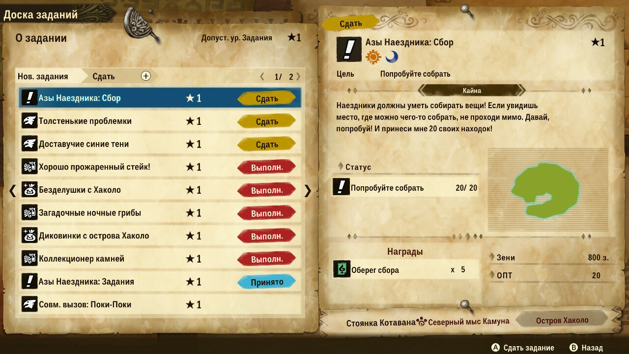 Помимо добычи яиц динозавров и сражения с ними, в игре есть и дополнительные квесты. Некоторые дают случайные жители деревни, другие берутся исключительно с доски заданий. В ней есть как основные задачи, которые выполняются по прохождению сюжета автоматически, так и побочные с фармом ресурсов. Меня удивил тот момент, что в первом случае квесты одноразовые, и исчезают после выполнения, в то время как вторые бесконечные, и на добыче ресурсов можно заработать приличные суммы.