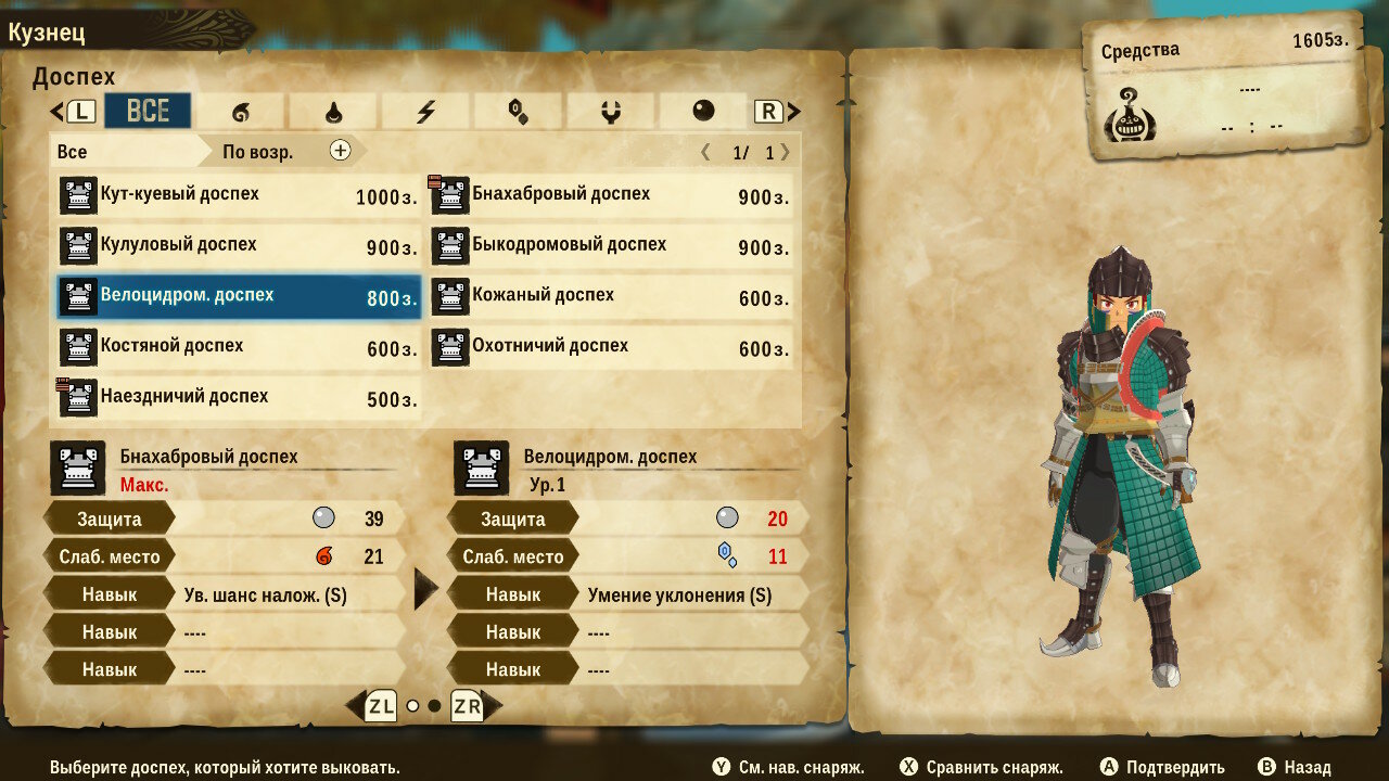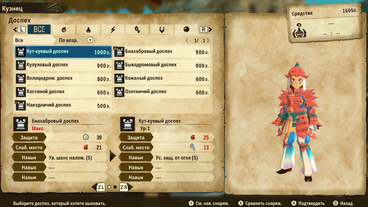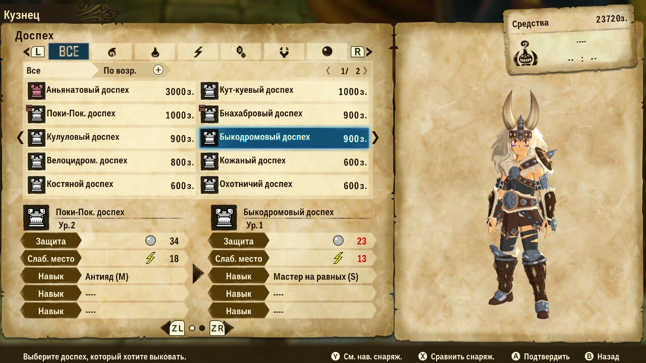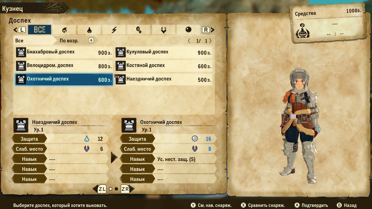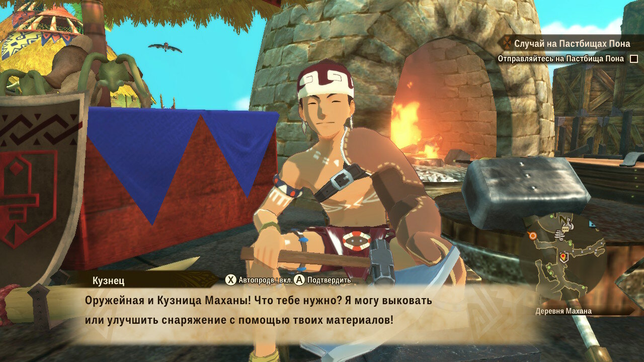 У кузнеца товар не столь интересен, сколь возможности крафта. Предлагаемый им выбор сильно уступает по характеристикам самодельному оружию или доспехам. Для крафта понадобится запастись необходимыми материалами и деньгами, но результат того стоит. Надо отдать должное разработчиками: броня выглядит симпатично, разнообразно и соответствует внешнему виду животного, с которого добываются ресурсы.